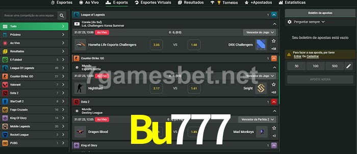 O Bu777 oferece uma grande seleção de opções de apostas em e-sports com probabilidades competitivas